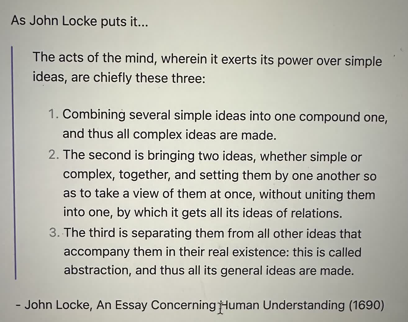 I leave you with this, an excerpt from An Essay Concerning Human Understanding by John Locke as seen on the Obsidian website: